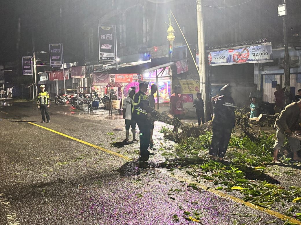 Dengan adanya laporan dari masyarakat, personel Satlantas Polres Aceh Selatan gerak cepat turun langsung ke lokasi guna melaksanakan pengamanan serta pengaturan lalu lintas. Selain itu, personel turut membantu masyarakat memindahkan batang pohon yang menutupi badan jalan agar akses kendaraan kembali lancar.