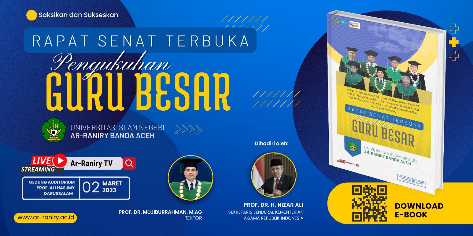 “Prosesi pengukuhan nantinya akan dilakukan oleh Sekjend Kemenag RI, Prof Nizar dalam Rapat Senat Terbuka Pengukuhan Guru Besar UIN Ar-Raniry Banda Aceh ke-3 yang berlangsung di Auditorium Ali Hasjmy pada Kamis, 2 Maret 2023 mendatang pukul 09.00 Wib sampai selesai,” kata Wakil Rektor bidang Akademik dan Kelembagaan, Muhammad Yasir.