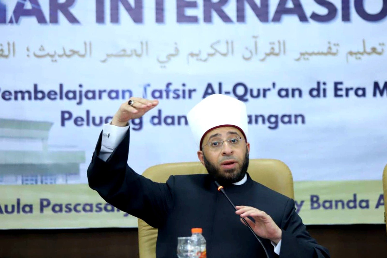 “Bagaimana kita di era teknologi ini mampu menafsirkan Al-Quran dalam bentuk amalannya, dimana kita memang memiliki tantangan yang sangat besar, namun disisi lain kita juga memiliki peluang yang amat besar,” kata Ulama Besar Mesir.