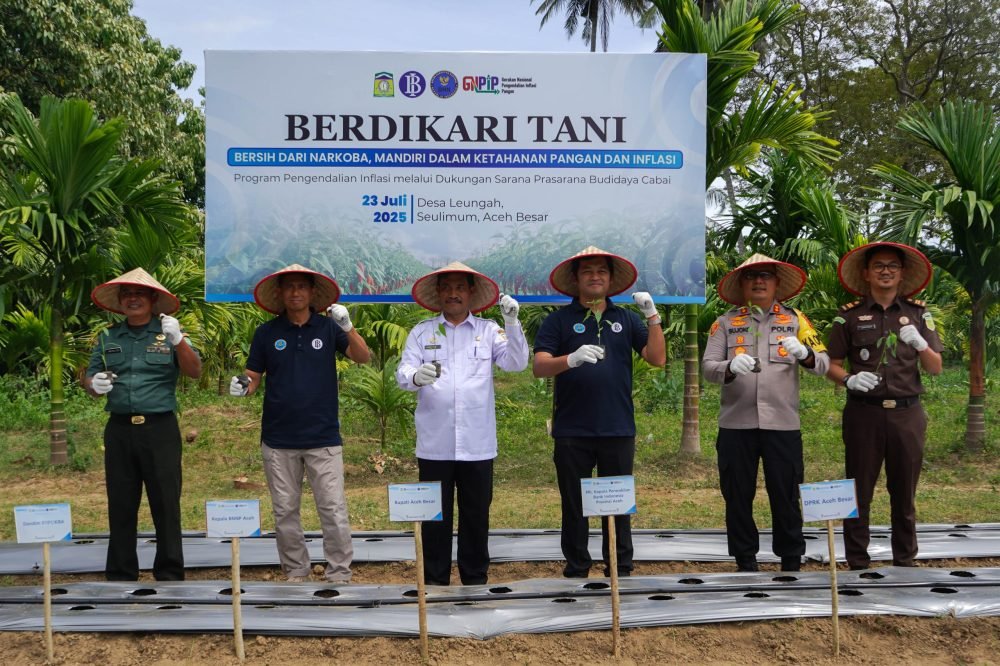 LENSAPOST.NET – Kantor Perwakilan Bank Indonesia (KPw BI) Provinsi Aceh bersinergi dengan Badan Narkotika Nasional Provinsi (BNNP) Aceh dan Pemerintah Kabupaten Aceh Besar meluncurkan Program Berdikari Tani (Bersih dari Narkoba, Mandiri dalam Ketahanan Pangan dan Inflasi) di Desa Leungah, Kecamatan Seulimeum, Aceh Besar.