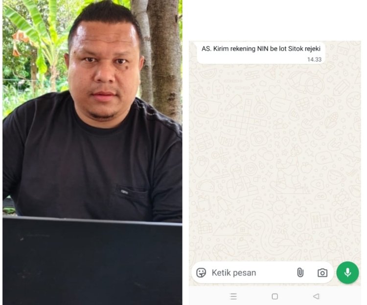 Ia membeberkan, baru baru ini Camat Lawe Alas mengirimkan berupa pesan singkat melalui aplikasi WhatsApp. Pesan tersebut jika diterjemahkan dalam bahasa Indonesia berbunyi ‘Assalamualaikum coba kirim nomor rekening kamu ada sedikit rejeki’ .