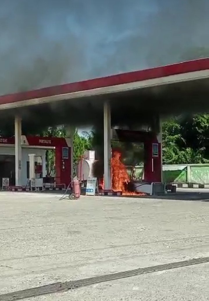LENSAPOST.NET – Stasiun Pengisian Bahan Bakar Umum (SPBU) di Dusun Alue Ara, Gampong Pantee Cermin, Kecamatan Babahrot, Aceh Barat Daya (Abdya) terbakar, Kamis 6 Juli 2023. sekira pukul 09.00WIB.