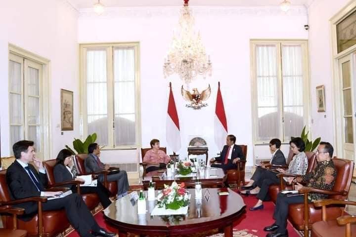 LENSAPOST.NET- Presiden Joko Widodo menerima Direktur Pelaksana Dana Moneter Internasional (IMF) Kristalina Georgieva beserta delegasi di Ruang Jepara, Istana Merdeka, Jakarta, pada Senin, 4 September 2023.