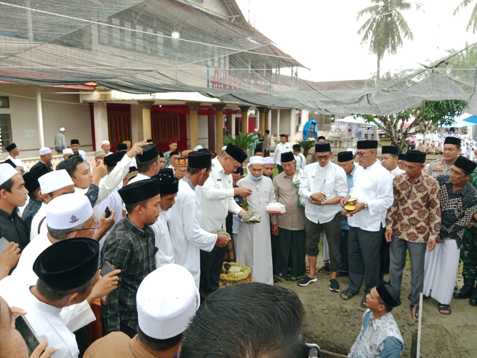 LENSAPOST.NET- Bupati Aceh Selatan Tgk Amran, SH, hadiri haul ke 12 Abuya Tgk. Syeikh H. Adnan Mahmud (Pimpinan Dayah Ashhabul Yamin) di Gampong Keude Bakongan, Kec Bakongan, sekaligus melakukan peletakan batu pertama pembangunan Gedung Utama Dayah Ashhabul Yamin.Rabu 6 September 2023.
