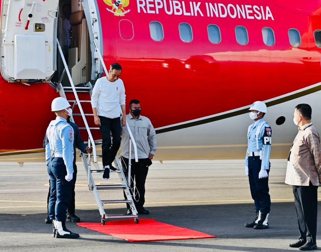 Sebelumnya, Presiden Jokowi lepas landas dari Pangkalan TNI AU Soewondo, Kota Medan sekitar pukul 07.35 WIB. Turut mendampingi Presiden dalam penerbangan tersebut antara lain Menteri Sekretaris Negara Pratikno dan Menteri Badan Usaha Milik Negara (BUMN) Erick Thohir.