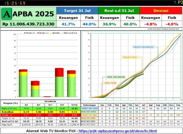 Ia menjelaskan, mengingat saat ini sudah memasuki simester ke II Tahun Anggaran 2025 daya serap APBA baru mencapai 41% dari Total APBA Rp.11,7 Trilyun, idealnya Realisasi Anggaran seharusnya sudah mencapai 60% jika dihitung dari sisa anggaran tahun 2025. Pemerintah Aceh diminta bekerja maksimal untuk menutupi sisa waktu yang efektif tersisa 90 hari lagi.