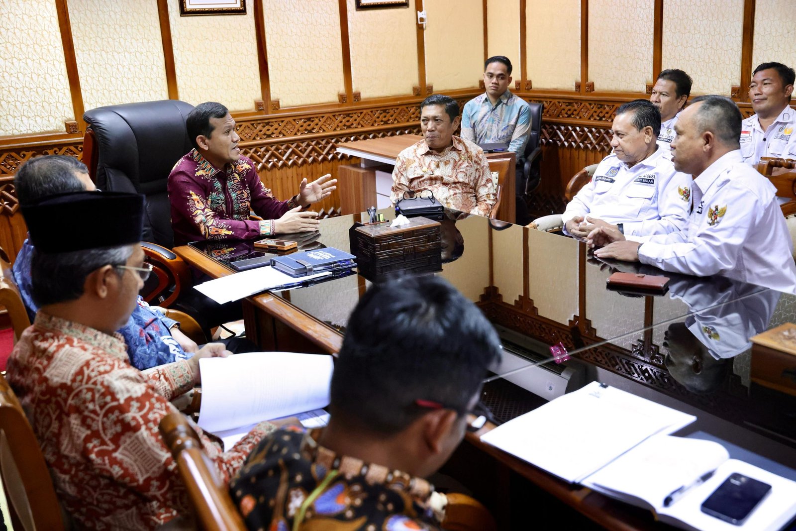 LENSAPOST.NET– Wakil Gubernur Aceh, Fadhlullah SE, didampingi Plt Sekda Aceh Alhudri menerima audiensi sejumlah Ketua DPC Asosiasi Pemerintah Desa Seluruh Indonesia (APDESI) kabupaten/kota di Aceh, di ruang kerja Wakil Gubernur Aceh, pada Kamis, (6/3/2025).