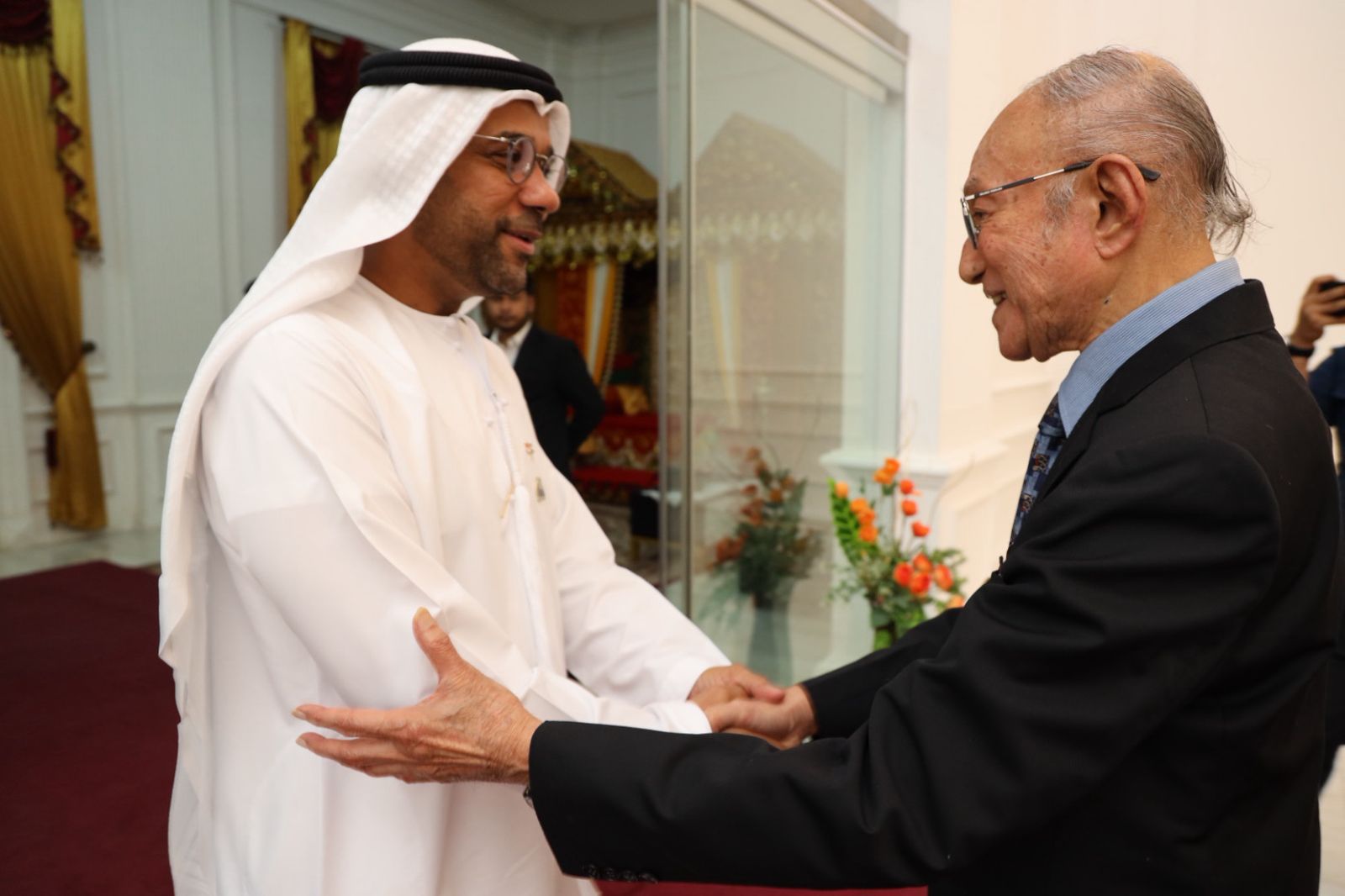 LENSAPOST.NET — Wali Nanggroe Aceh Paduka Yang Mulia Tgk. Malik Mahmud Al Haythar menjamu Duta Besar Uni Emirat Arab (UEA) untuk Indonesia, H.E. Abdullah Salem Aldhaheri, dalam sebuah jamuan makan malam di Meuligoe Wali Nanggroe, Minggu malam 26 Oktober 2025.
